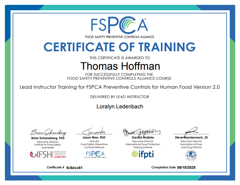 - Experience implementing successful FSMA Food Safety Systems.